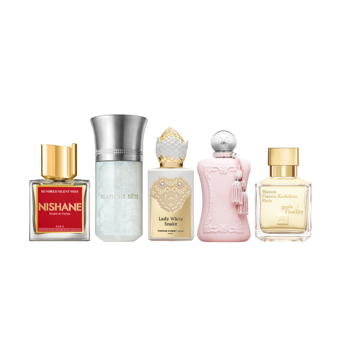 We've put together a bundle of five 2ml decants for you to discover your signature scent from the very best of our collection. This set is feminine-leaning but scents are subjective to your own taste.