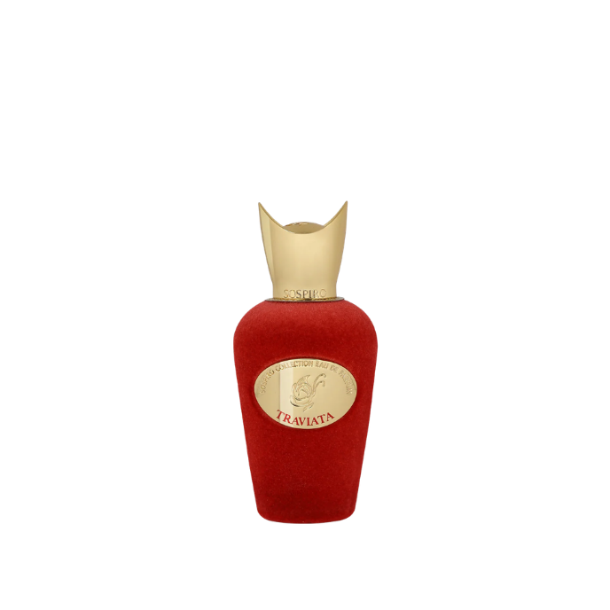 Traviata was launched in 2024 as part of Sospiro’s operatic-inspired collection. The composition opens with bergamot and pink pepper, enriched by the tart sweetness of blackcurrant. A floral heart of jasmine and rose adds body and elegance, maintaining clarity while enhancing the fruit-driven introduction. In the base, patchouli provides structure, while amber, vanilla, and musk deliver warmth and softness. The fragrance balances brightness with depth, presenting a polished fruity-floral character anchored by an ambered foundation. It wears as smooth and expressive, combining vibrant top notes with a rounded, gently sweet drydown aligned with Sospiro’s signature refined richness.